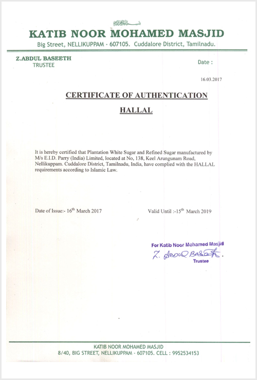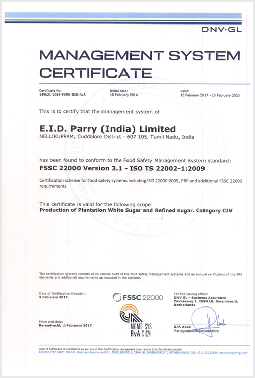 Sugar – Certifications